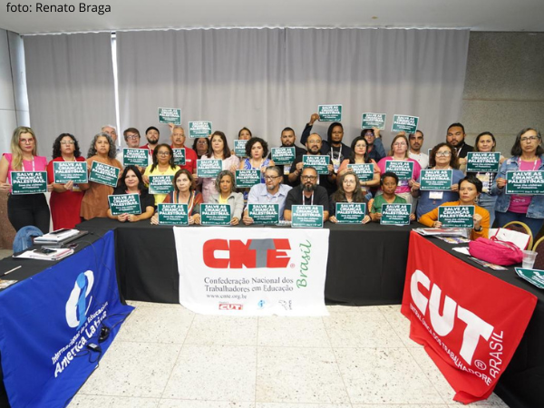 Já nesta quarta-feira (21), os(as) dirigentes se manifestaram em solidariedade ao povo palestino. Com placas e dizeres de “Palestina: Pare o genocídio já”, e “salve as crianças palestinas”, o momento foi registrado em vídeos e fotos para reprodução nas redes sociais.