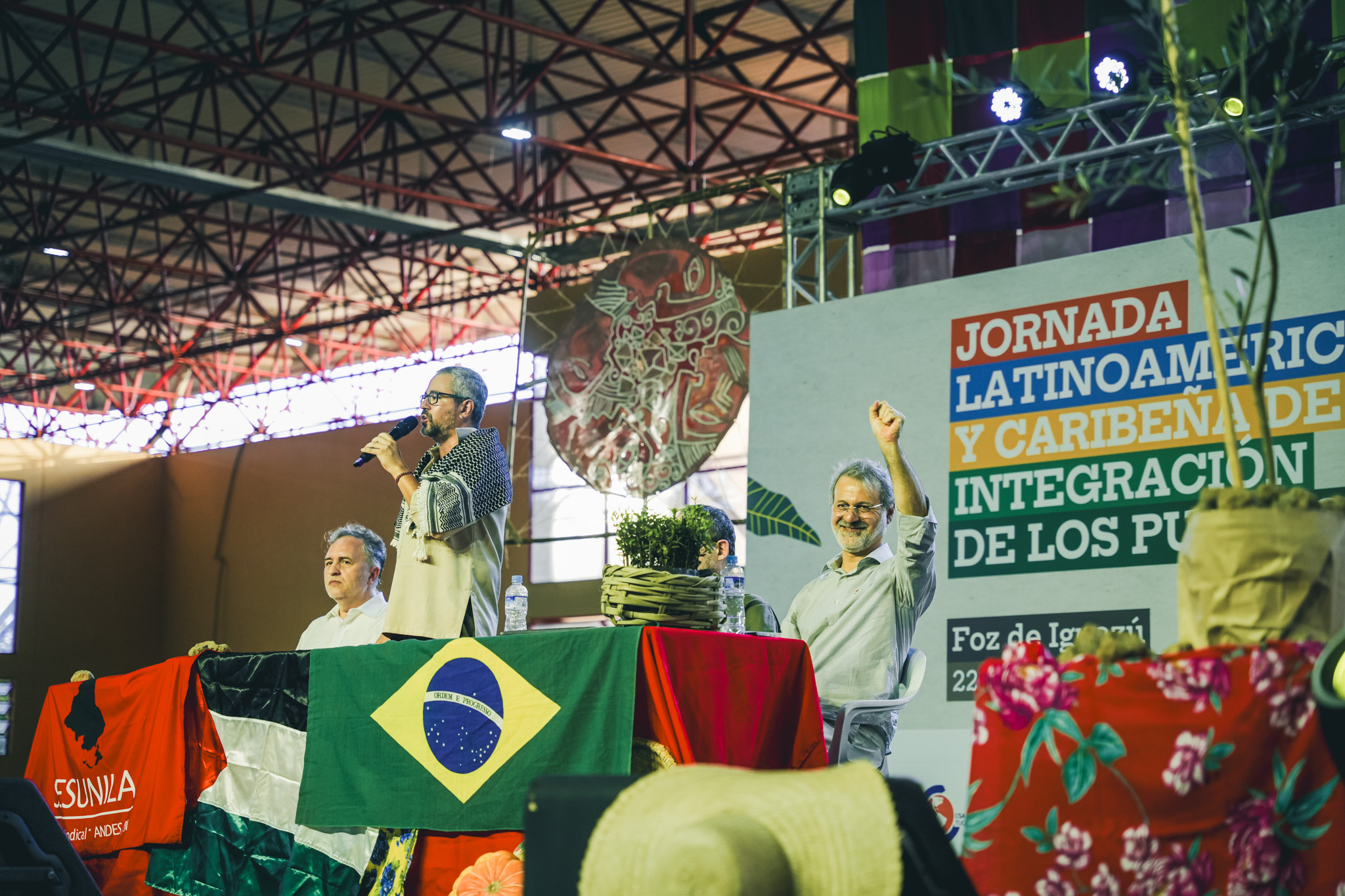 Mais de 4 mil pessoas participam da Jornada Latino-Americana e Caribenha de Integração dos Povos, evento realizado em Foz do Iguaçu (PR), que proporciona uma oportunidade para os movimentos populares e lideranças políticas discutirem soluções e caminhos para ampliar a aproximação entre os países do continente.