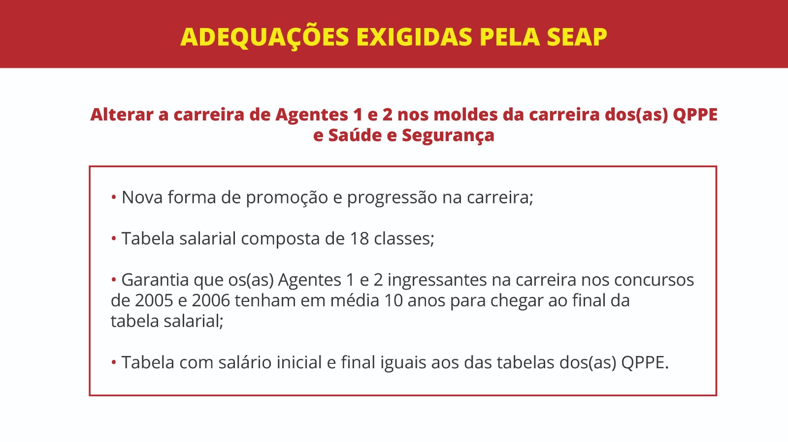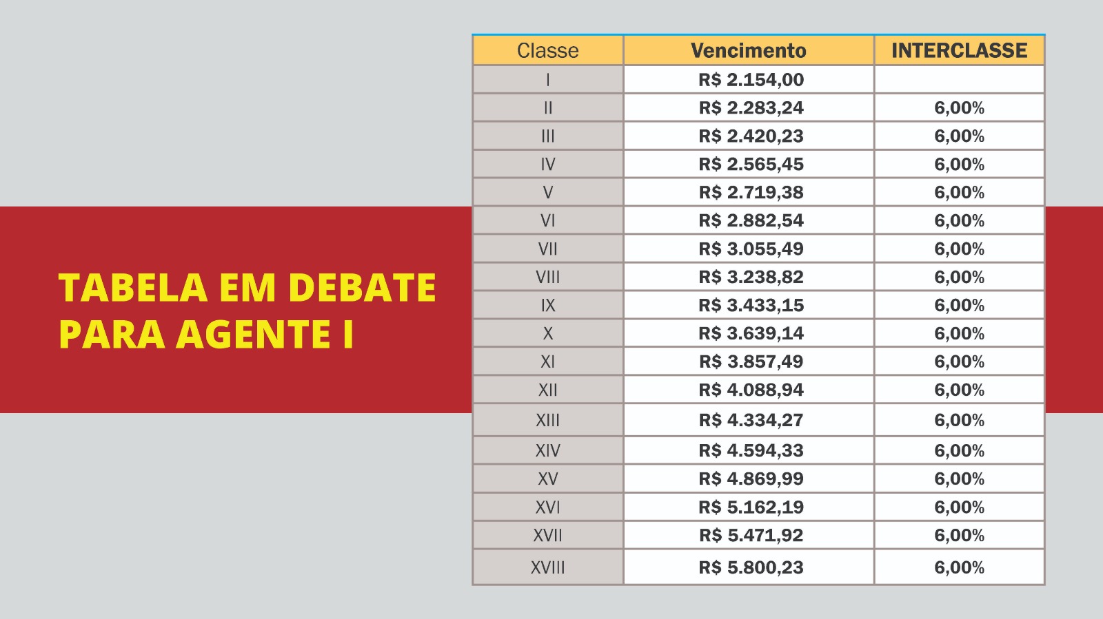 Entre os pontos de incerteza, está a proposição de uma tabela diferenciada para os(as) Agentes I, uma vez que a proposta aprovada para os(as) QPPE é considerada muito inferior ao esperado.