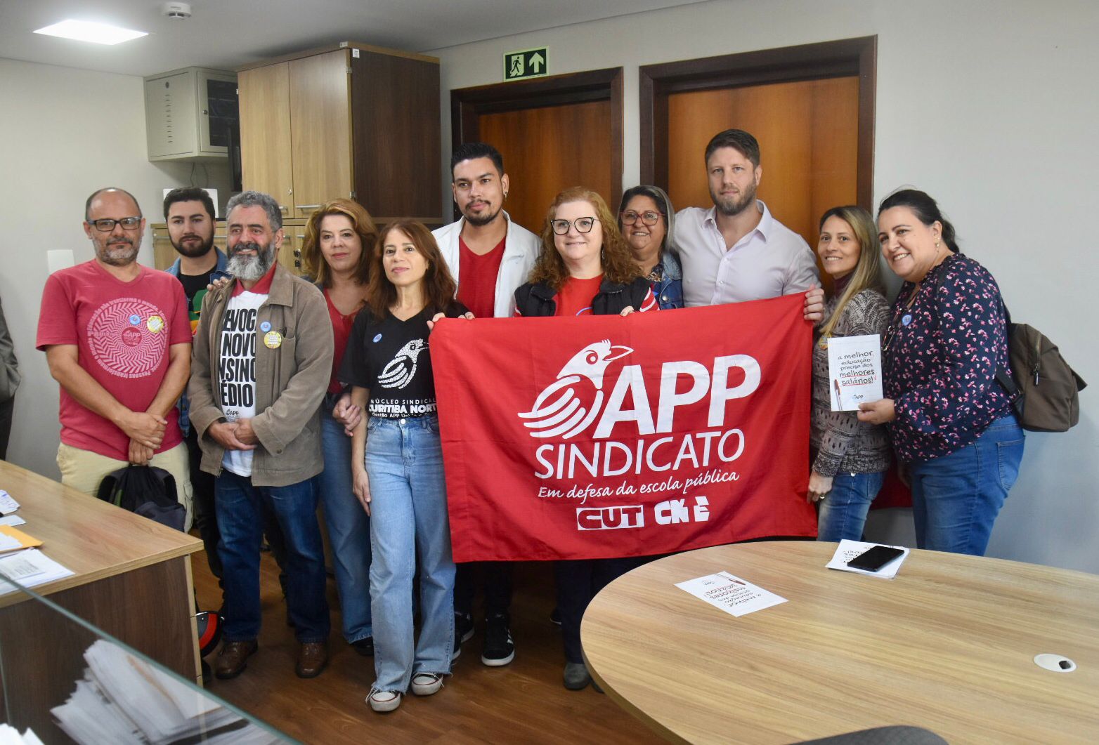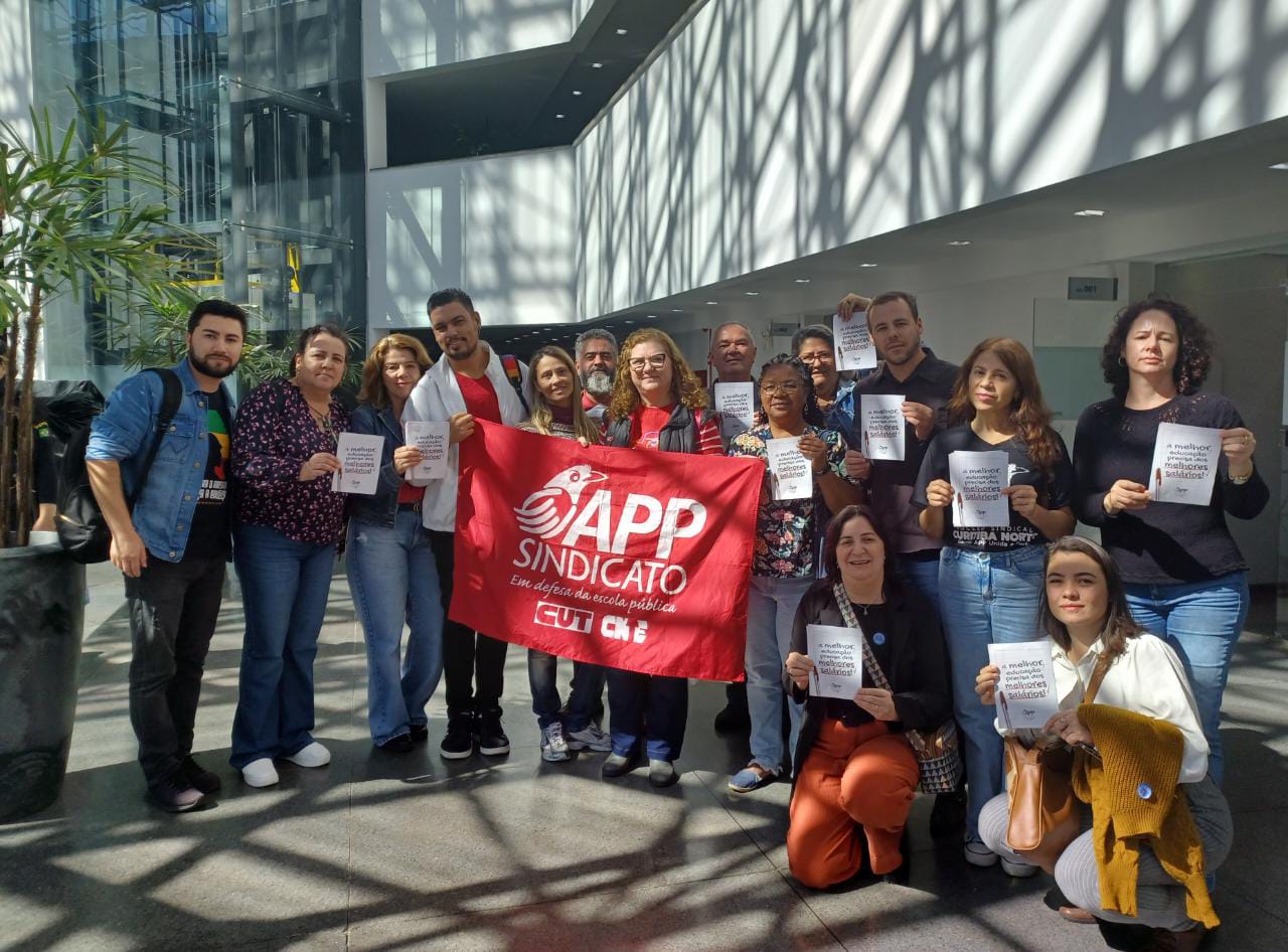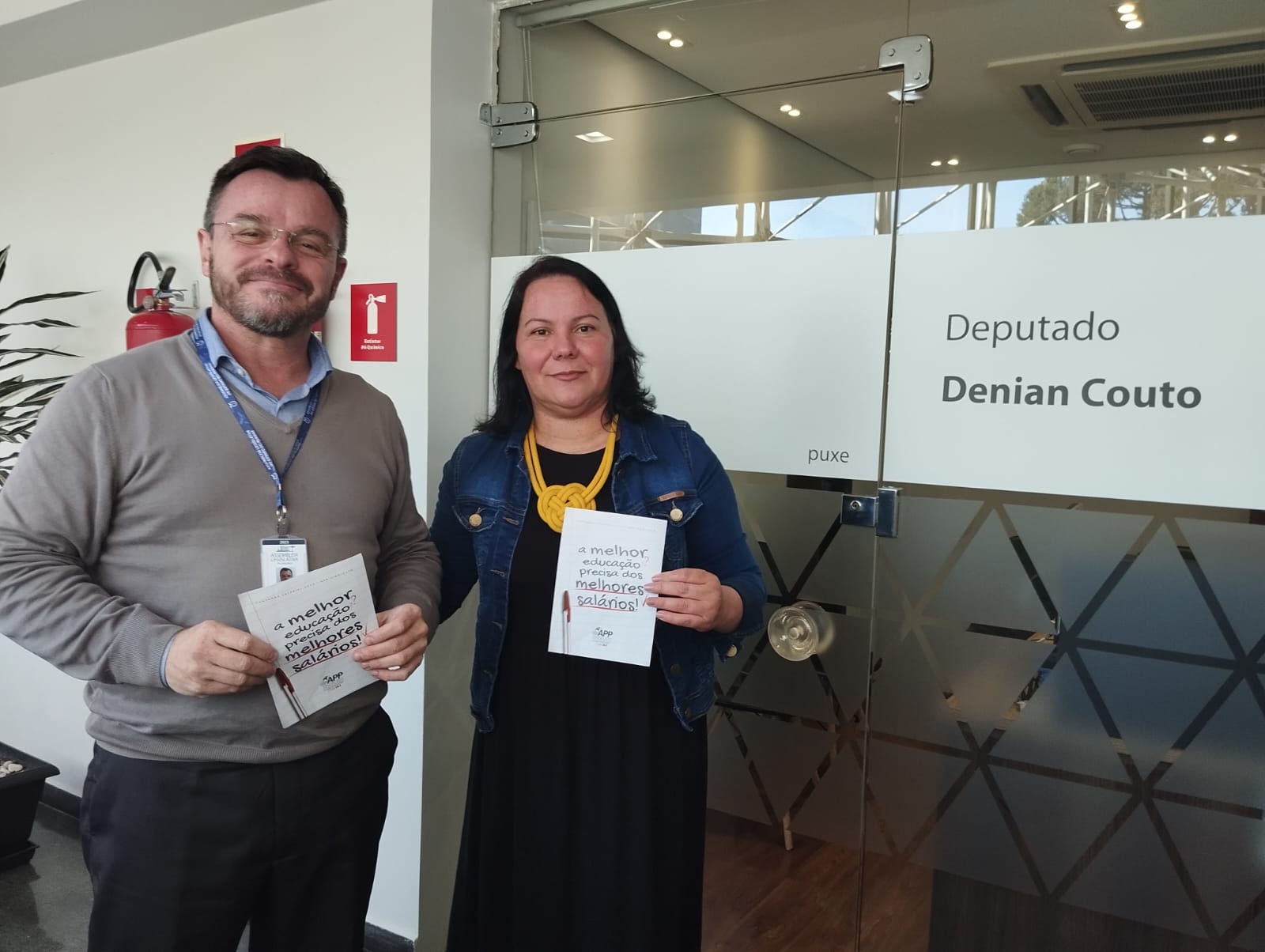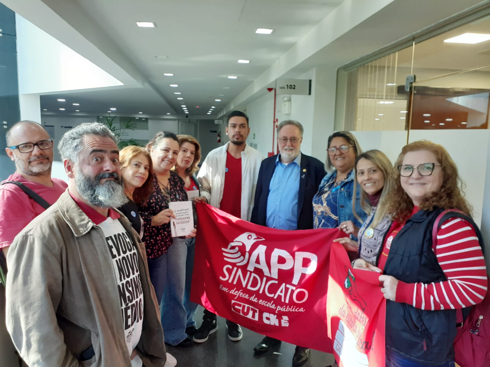 Nesta terça-feira (23), dirigentes da APP-Sindicato e educadores(as) de Curitiba percorreram os gabinetes da Assembleia Legislativa (Alep) para dialogar com os(as) deputados(as) estaduais sobre as reivindicações da categoria a respeito da Data-Base.