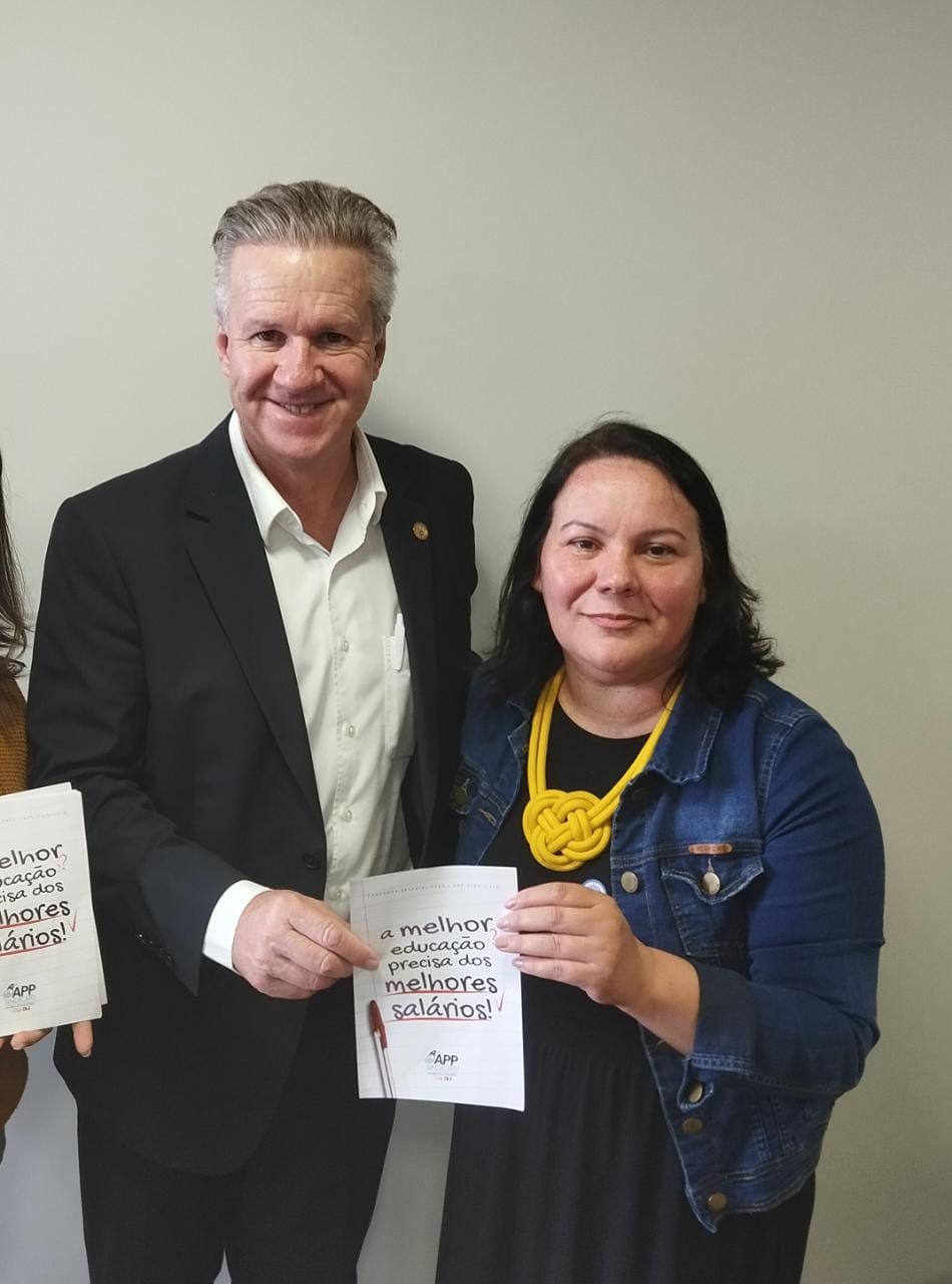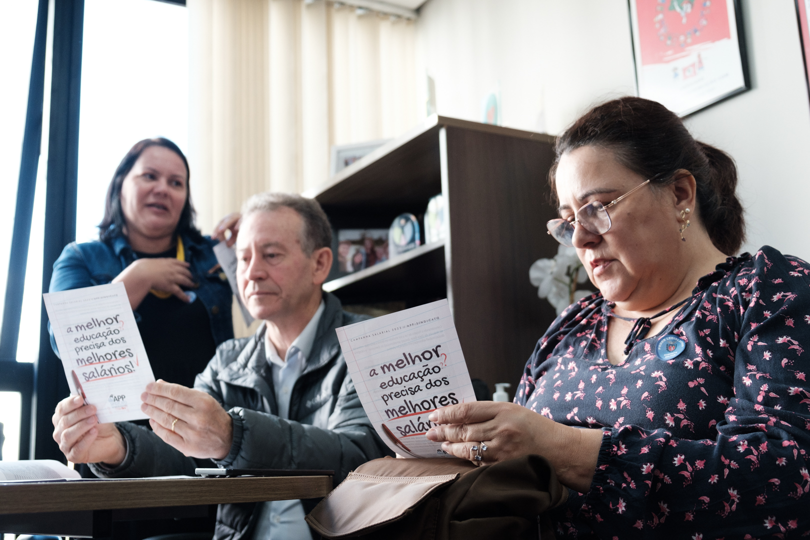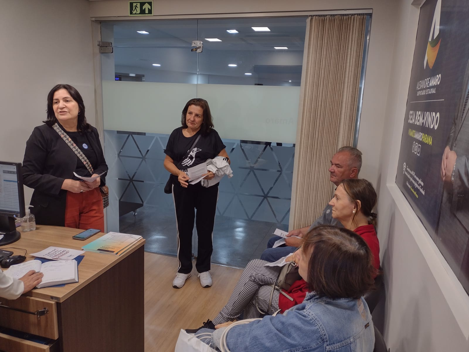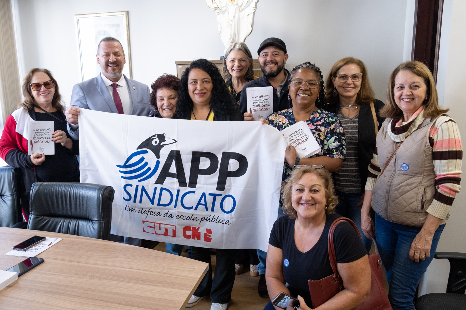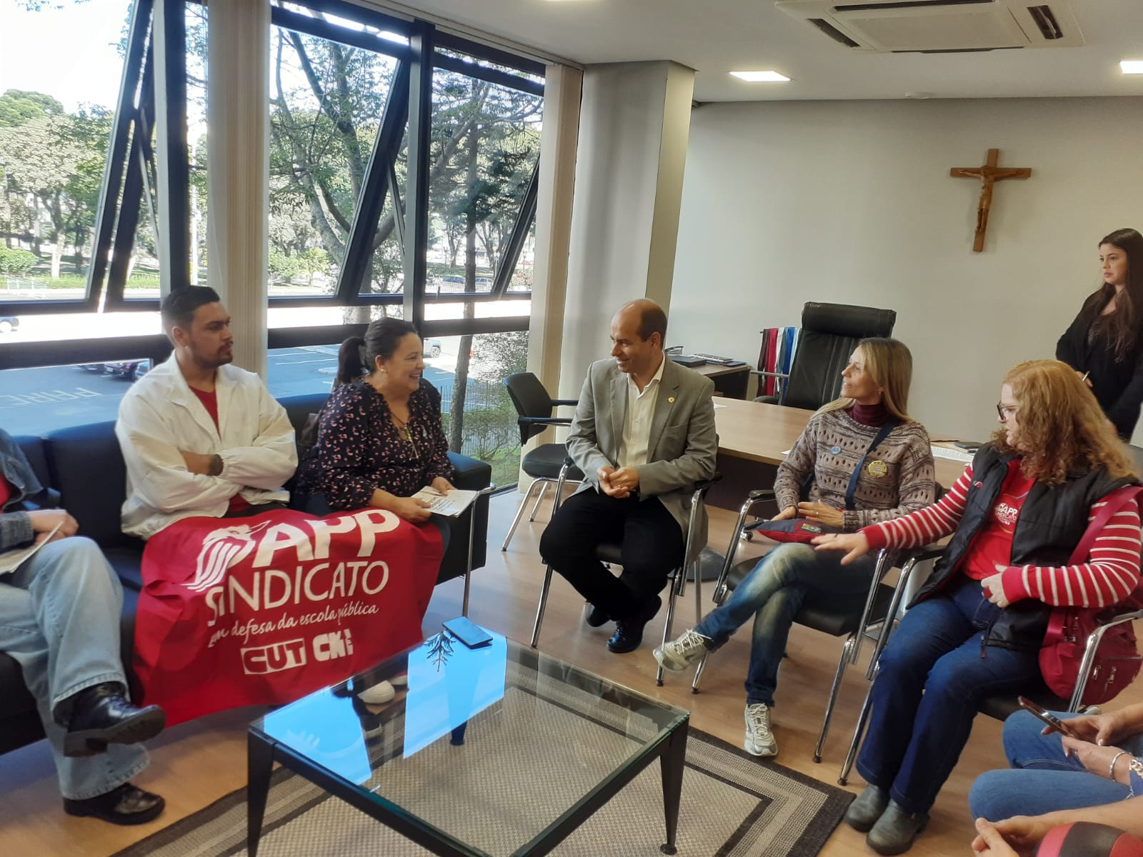 Nesta terça-feira (23), dirigentes da APP-Sindicato e educadores(as) de Curitiba percorreram os gabinetes da Assembleia Legislativa (Alep) para dialogar com os(as) deputados(as) estaduais sobre as reivindicações da categoria a respeito da Data-Base.