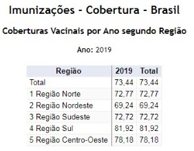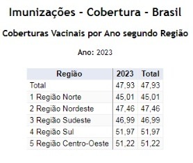 De acordo com o Sistema de Informação do Programa Nacional de Imunizações (SI-PNI/CGPNI/DEIDT/SVS/MS), a Região Sul, que compreende os estados do Paraná, Santa Catarina e Rio Grande do Sul, liderava o ranking das regiões com maiores coberturas vacinais, com 81,92% em 2019, período pré-pandêmico. Já em 2023, mesmo ainda liderando o ranking, a Região Sul passou para 51,97% da população-alvo vacinada.